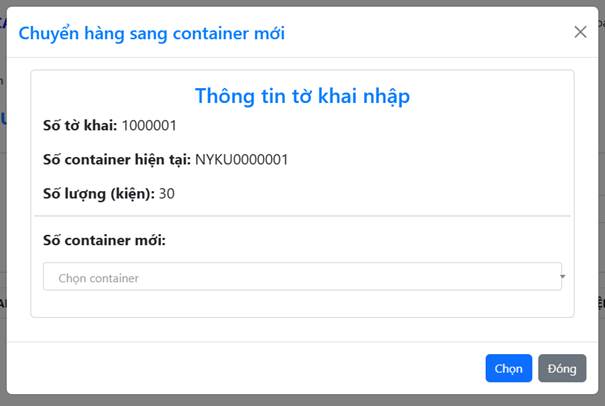 Cửa sổ mới sẽ hiện lên cho phép doanh nghiệp chọn số container mới để chuyển hàng sang